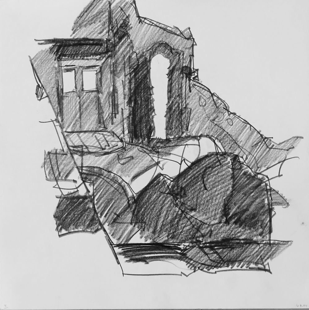 Naturverheerungen und -katastrophen sind in den meisten Fällen Folgen von Menschenwerk. Die Verheerungen von Wohngebieten durch den Hurrican Katrina hatten auch mit der Lage der Behausungen direkt am Wasser zu tun. Heute sehe ich auch bestimmte Bauweisen in Erdbebenregionen kritisch und manchmal erfasst mich beim Zeichnen ein Grusel über die schwindelerregende Lage von Berg-Nestern in der "Madonie". Aber dann begeistern mich der Umgang mit Baumaterialen und die Erfahrung mit verschachtelten Torbogen-Gassen etwa in Ligurien.