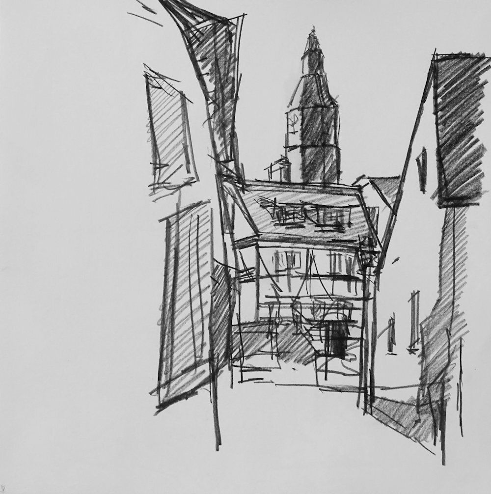 Zeichnerisch sehe ich von Menschen gestaltete Landschaften und Naturräume nun auch schon länger anderwärts. Landwirtschaftlich genutzte Flächen sehen in Andalusien anders aus als in Sizilien oder in der Provence. Das gleiche gilt für die gebaute Umwelt. Wie sich die Materialnutzung wandelt, wie Zeitschichten aussehen, wie die Mensch-Natur-Verhältnisse in unterschiedlichen Gegenden zu unterschiedlichen Land-schaften und Umgebungen führen, auch das interessiert mich.